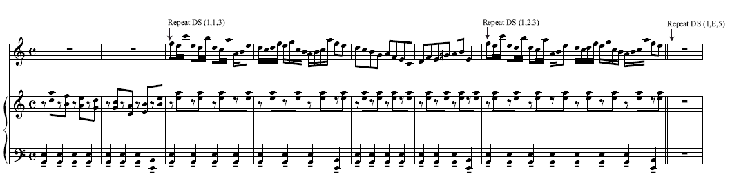 This Repeat DS marks the location in the Finale document of the ‘actual beginning’ of the first DS section. This appears at the beginning of measure 3 in the original Finale score.