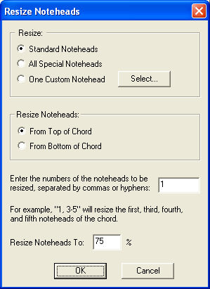 Here, specify the noteheads to be resized. Your entries here depend on