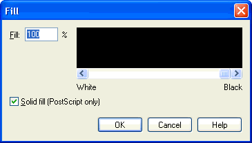 When you’re creating a shape in the Shape Designer, you can specify that any enclosed object (square, circle, polygon, and so on) be "colored in" with any shade of black or gray. If none of the shading choices in the Fill submenu is what you want, you can use this dialog box to specify any other degree of black or gray.