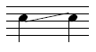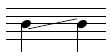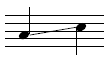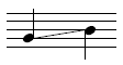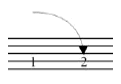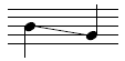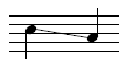 Notehead on line. Applies to a note on a line where the pitch is decreasing to the next note on a different staff line. |