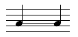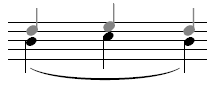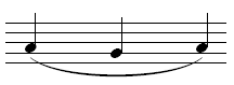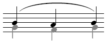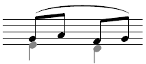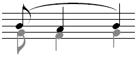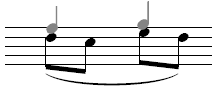 Notehead on line. Applies to a note on a line where the pitch is decreasing to the next note on the same staff line. |