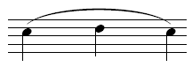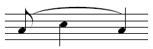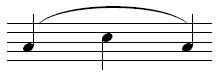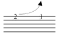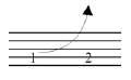 Notehead on line. Applies to a note on a line where the pitch is increasing to the next note on the same staff line. |