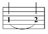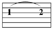 Bend. Applies to a fret number on any line but the top. |