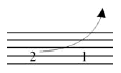 Notehead on line. Applies to a note on a line where the pitch is increasing to the next note on a different staff line. |