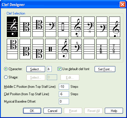 Clef Designer dialog box