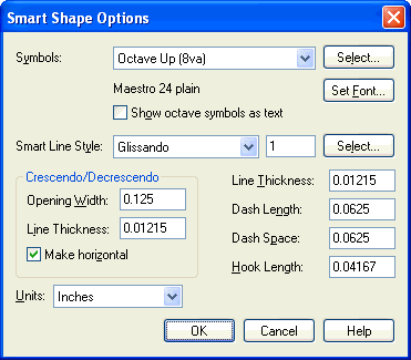 for the crescendo/decrescendo shape using this dialog box. Then, your