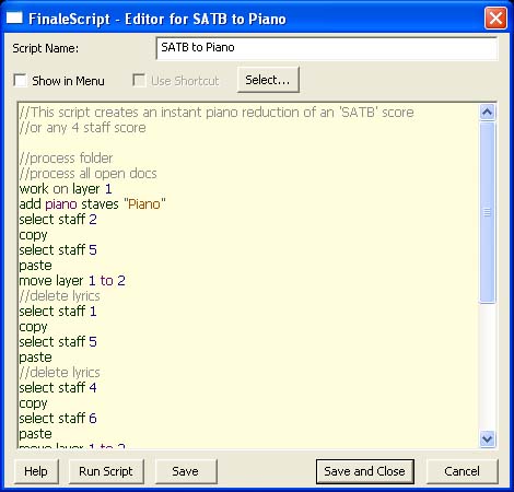- Run Script. Choose Run Script to execute your script without leaving the FinaleScript - Editor dialog box.