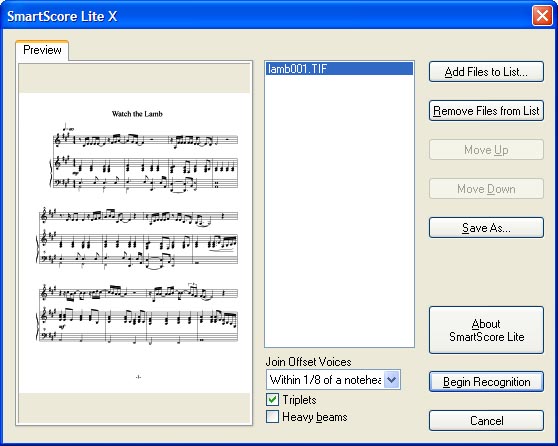 - Triplets · Heavy Beams. Check triplets to tell SmartScore Lite to recognize and import triplets. Check Heavy Beams to prevent thick eighth beams from being classified as 16th beams.