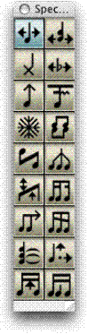 in the default music font appears; double-click any shape in this palette