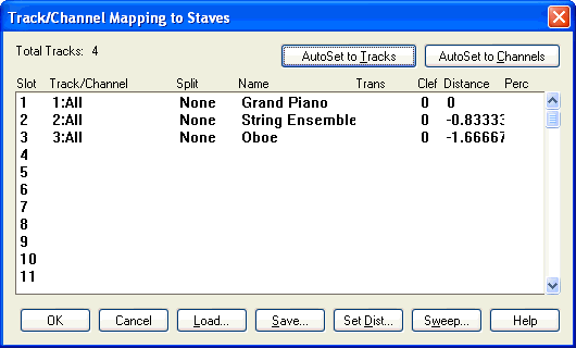 Track/Channel Mapping to Staves dialog box