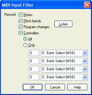 MIDI Input Filter dialog box