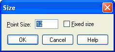 The Size dialog box allows you to select any point size for your text. You can also specify Fixed Size to display the text at the specified point size, regardless of any reductions that would otherwise resize the text.