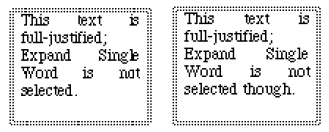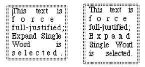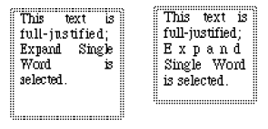 Full justified text with Expand Single Word selected: