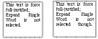 Full-justified text without Expand Single Word selected: