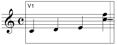 Try moving the crossbar up and down the notes of this chord. If you hold down the up arrow key long enough, Finale will add so many ledger lines that the measure you’re working on scrolls downward (or upward, if you’re pressing the down arrow key).