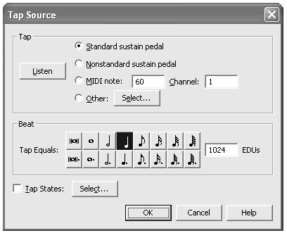 you’ll be tapping to provide the tempo reference. The Tap Source dialog