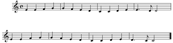 “Ode to Joy” as shown here. Remember to tap steady quarter notes