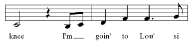 I’m [space] goin’ to Lou’-si-a-na, my [space] true love for to see. [space]
