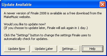 From the Help menu, choose Check for Finale Updates in a version of Finale not current with the latest maintenance update.