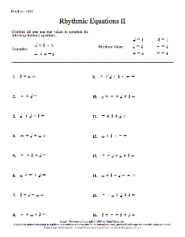 Vous êtes ici : Reference > Worksheets & Flash Cards > Rhythms > Rhythmic Equations